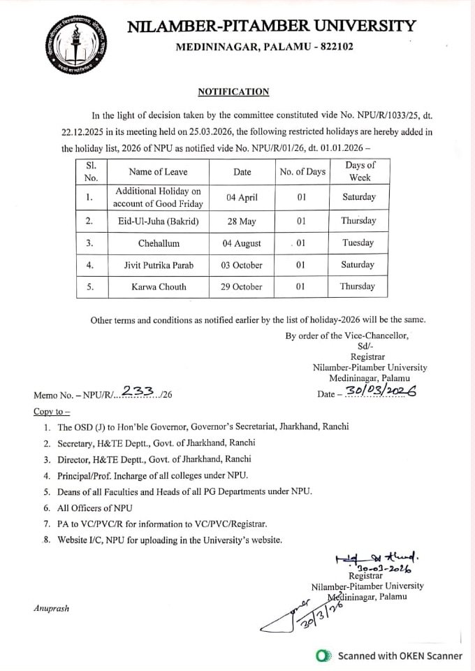 - सत्र 2024- 28 के पंजीयन संबंधी March 28, 2026