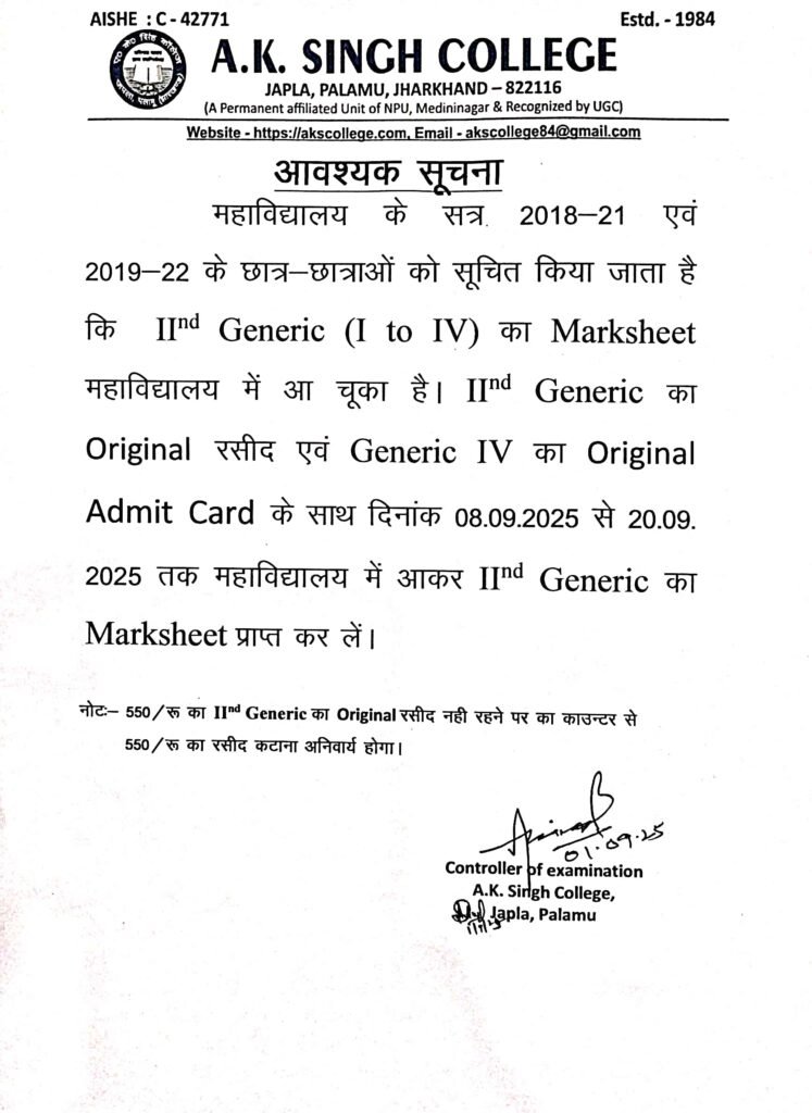 अंकपत्र Post author:A K Singh College, Japla Post published:September 1, 2025 Post category:Uncategorized Post comments:0 Comments Share this: Click to share on Facebook (Opens in new window) Facebook Click to share on X (Opens in new window) X Like this:Like Loading... You Might Also Like अवकाश April 19, 2025 साइबर सुरक्षा जागरूकता कार्यक्रम October 11, 2025 Exam Form Fill up Schedule Semester-2 All Backlog. December 9, 2023 Leave a Reply Cancel replyCommentEnter your name or username to comment Enter your email address to comment Enter your website URL (optional) Save my name, email, and website in this browser for the next time I comment. Notify me of follow-up comments by email. Notify me of new posts by email. Δ