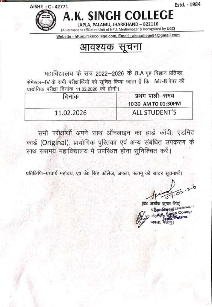 Practical Exam, Home Sc., Session- 2022- 26, Sem- IV